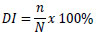 Where DS = disease severity (%), ∑(n × v) = number of seedlings showing symptoms at a certain score, N = total number of seedlings used, and V = highest score used. Disease severity was determined using a 4-category scoring key: 0 = healthy plant, 1 = many yellowing leaves, 2 = many yellowing and wilting leaves, 3 = blackened stem base, total wilting, and plant death [6]. Disease incidence was calculated using the following formula: